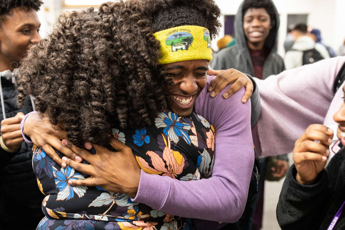 Xavier Abdullahi celebrates after receiving a full-tuition scholarship. Liam James Doyle/University of St. Thomas