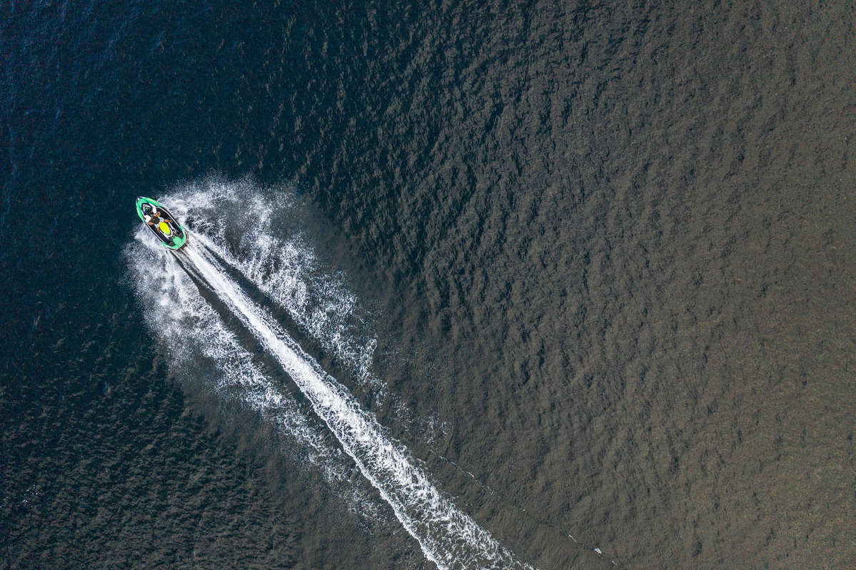 Schulze Innovation Scholar Dylan Dierking founded Foodski, a Jet Ski food delivery business based in White Bear Lake. Dierking takes orders for deliveries from customers ordering food from area restaurants and delivers them to homes and boats around the lake on his Jet Ski. Mark Brown/University of St. Thomas