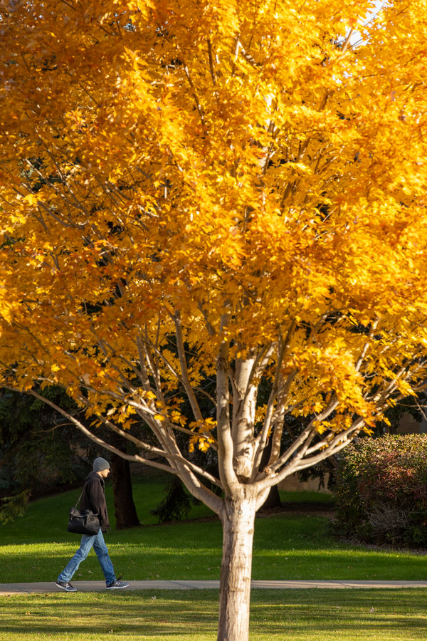 Leaves reached peak color on a beautiful fall day on the quad. Mark Brown/University of St. Thomas