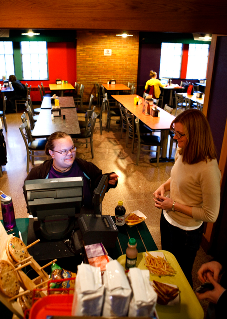 Windsperger appreciates the opportunity to be part of a campus community where she’s able to take full advantage of opportunities other students enjoy. She has a cadre of friends and a Dowling Hall roommate whom she calls “awesome.” She looks forward to learning American Sign Language this summer. She’s exploring the possibility of religious life or becoming a youth minister. She has a work-study job as a cashier in The Grill, a hub of the St. Paul campus. As she stands on a stool to work the register, smiling and greeting her customers, it’s easy to see how her presence – and that of students of all abilities, ages, creeds, colors and origins – enriches the life of the university.