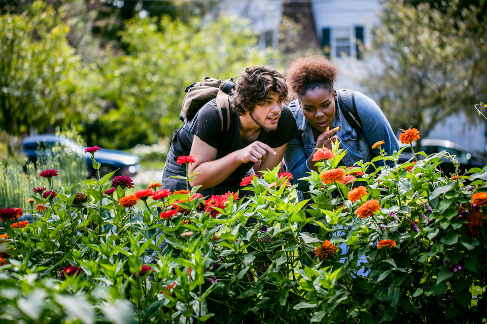 Students from St. Thomas’ Dougherty Family College conduct class within the St. Paul campus’ Stewardship Garden, a bountiful resource for research and community impact.